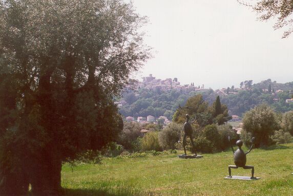 | Lo stupendo giardino che circonda la casa, ricco di piante e sculture, permette di ammirare uno splendido panorama sul quale si staglia Haut-de-Cagnes. | |
