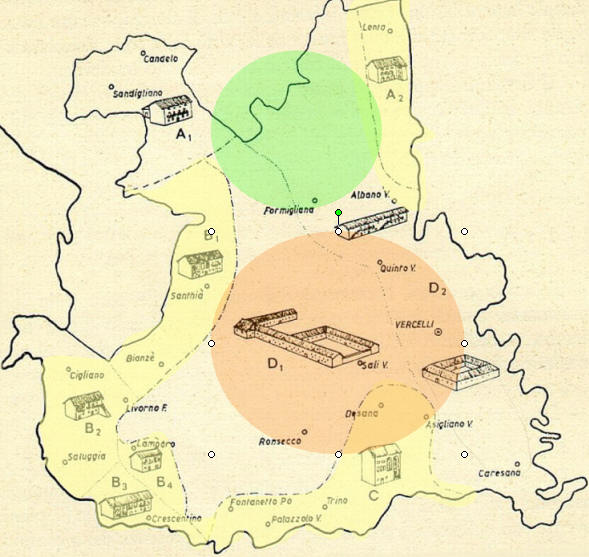 nell'area risicola vercellese e suddivisi a seconda dello loro prevalente