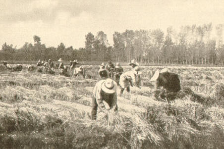 Vinzaglio - Il lavoro di essiccazione del riso sulle aie